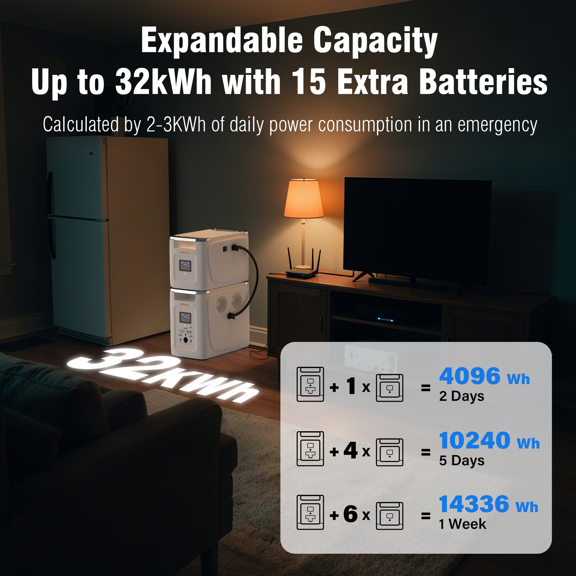 - Capacité de la batterie : 2048 Wh, prend en charge jusqu'à 15 batteries, capacité étendue à 32 kWh.