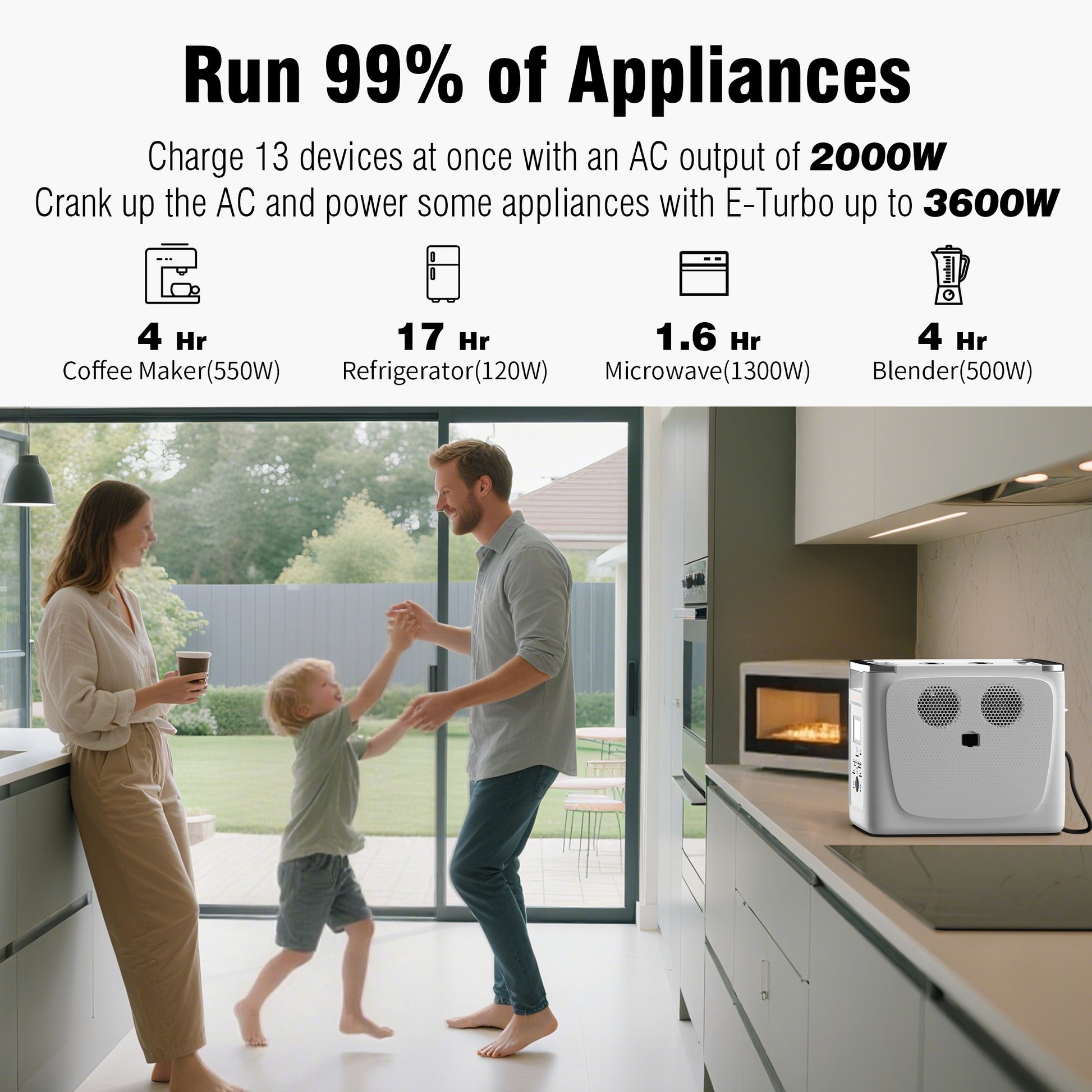 - Puissance nominale : 2 000 W (prise en charge de la puissance de sortie de l'onduleur intelligent E-Turbo jusqu'à 2 500 W).
