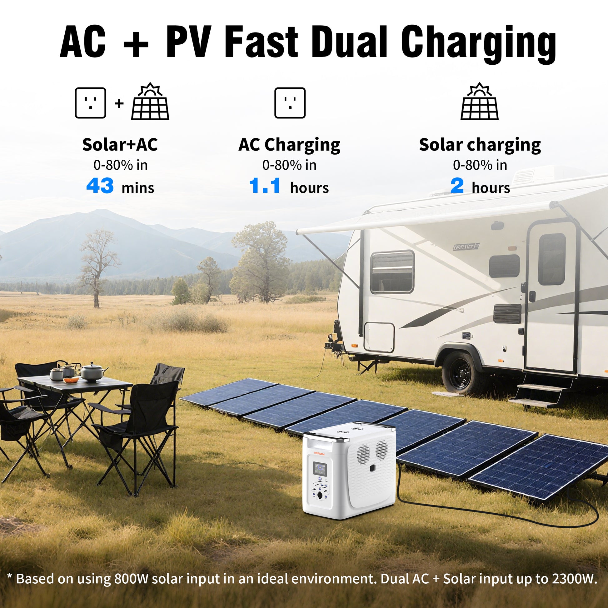 - Entrée CA : 100 V ~ 240 V, 1 800 W (la vitesse de charge CA peut être ajustée, 100 W-1 800 W).