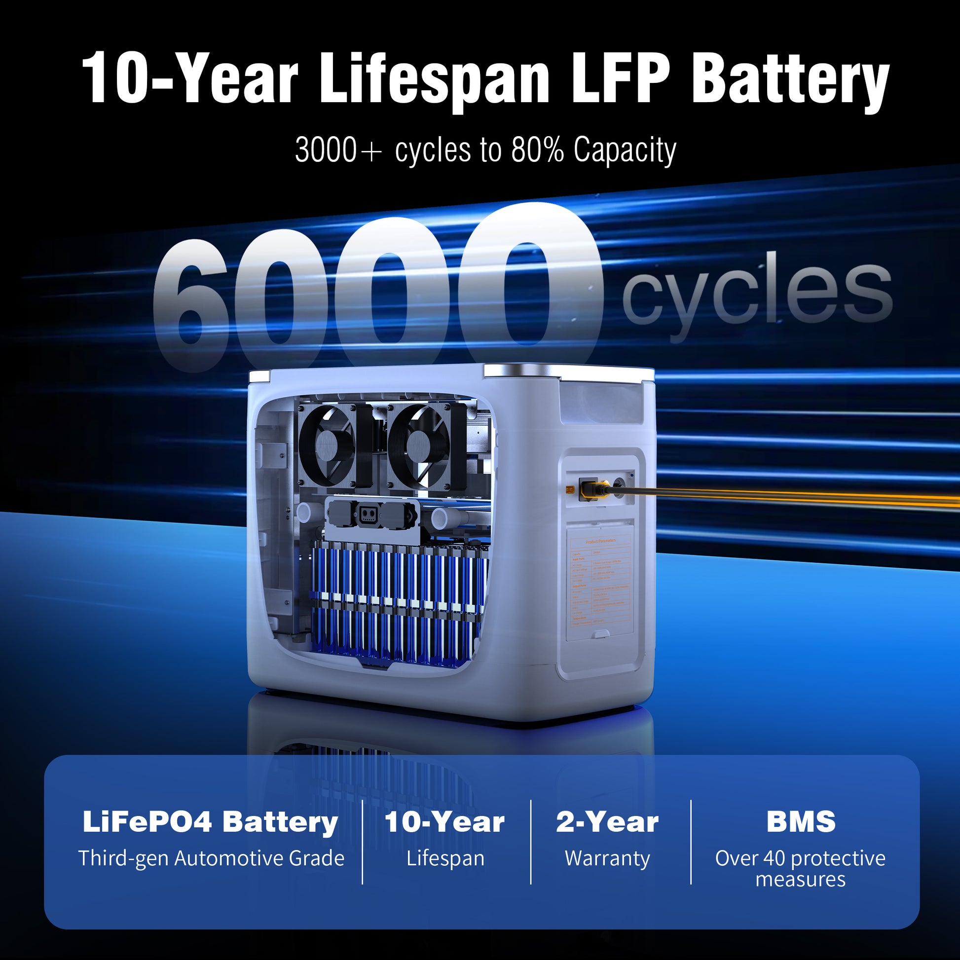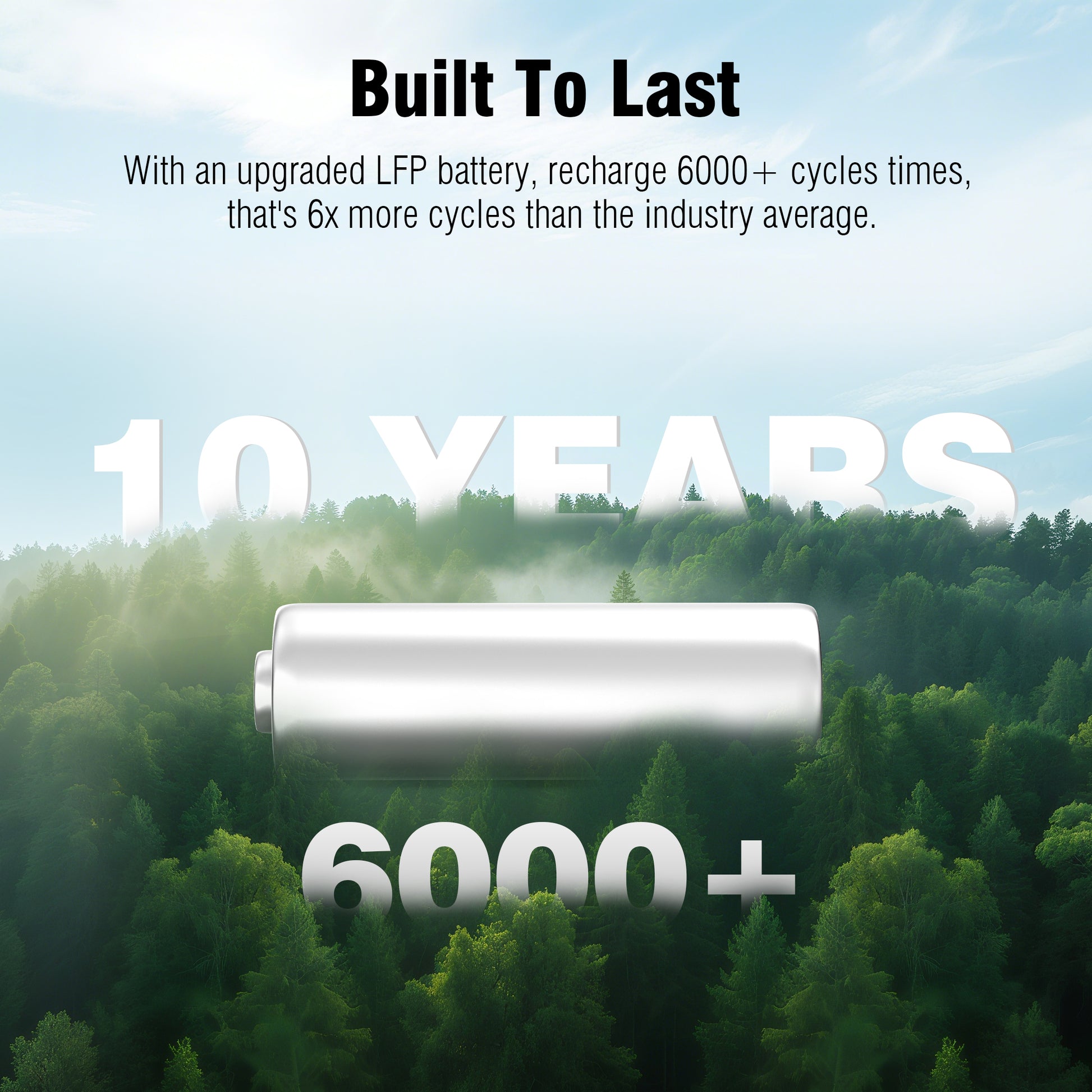 - Type de batterie : batterie LiFePO4, durée de vie jusqu'à 6 000 fois